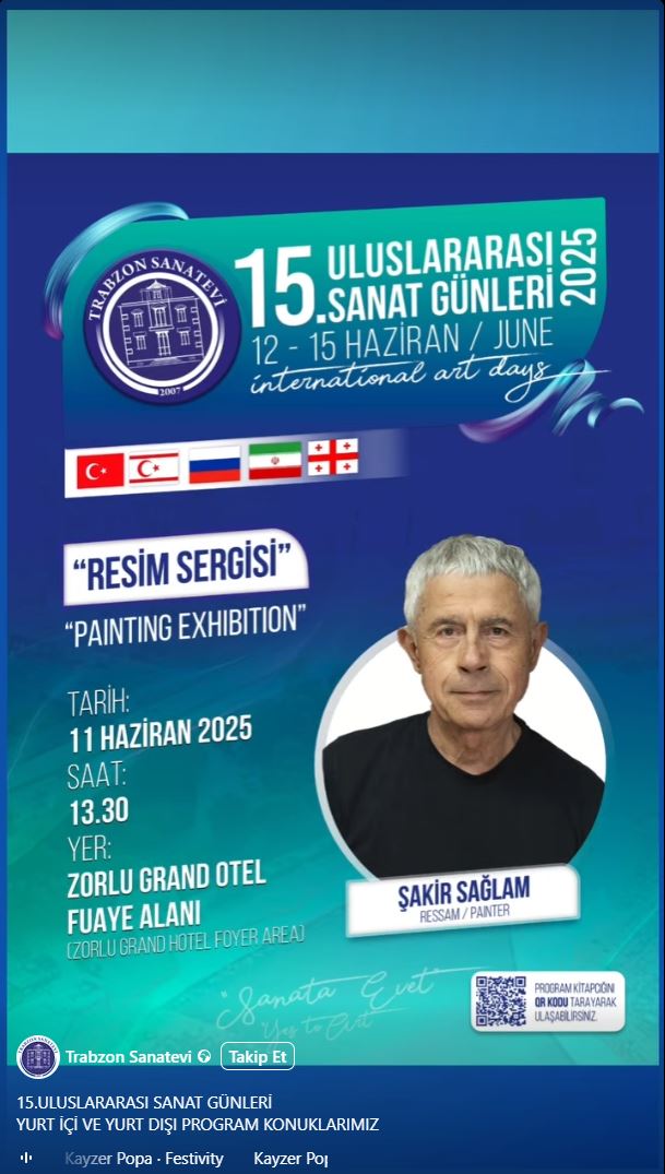 Beşikdüzü sergisinin ardından Trabzon Sanatevi’nin düzenlediği 15. Uluslararası Sanat Günleri’nde sergi açacak.