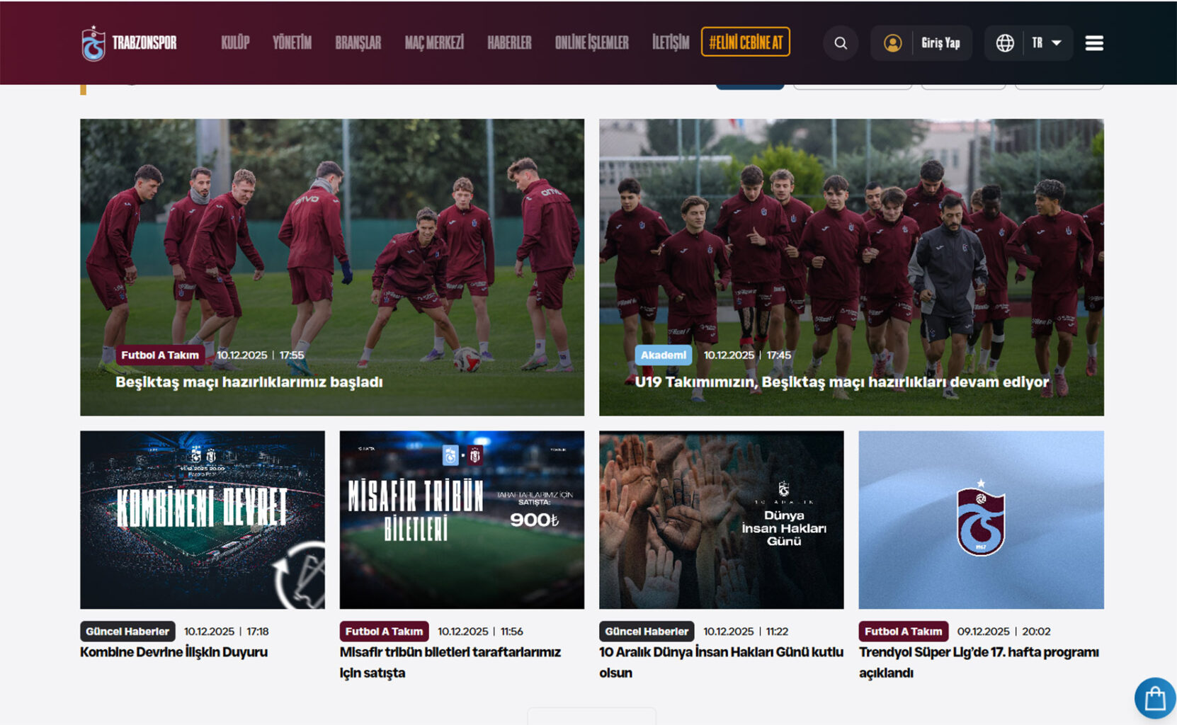 Trabzonspor, Anasayfadan Dünya İnsan Hakları Günü duyurusu yaptı. 10.12.2025