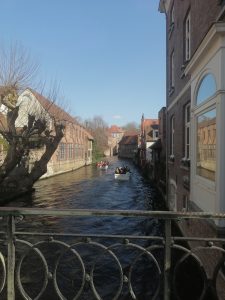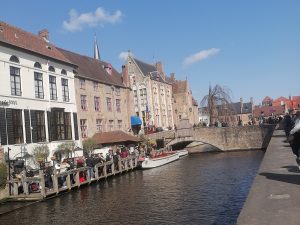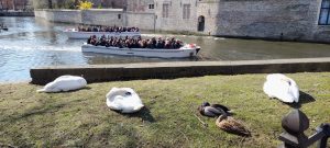 Araçlar için park alanı içinde ağaçlar, karşısında tren istasyonu. Yürüyerek gezi alanına lambalardan geçerek vardık. Turistik bir Kent olduğundan kalabalık. Hava güneşli Kanallar hemen dikkat çekiyor. Ağaçlar arasında yürüyüş yolu çevrede tarihi yapılar, kanal üzerinde köprüler, Kaz ve ördekler dolaşıyor. Ara sokaklar taş döşemeli, sok içinde dükkanlar, at arabaları dolaşıyor. Patatesiyle meşhur. Farklı meydanlarda oturma yerleri çevresinde kilise, müze,. Yürüyerek ilerlerken kanala yakın tarihi binalar kanallar boyunca yer alıyor. Kurulmuş hediye pazarı insanların dikkatini çekiyor. Kanalda gezmek için bir noktadan bilet alarak Gondola biniyorum, kanalda ilerlerken rehber açıklama yapıyor bize Semih çeviri yapıyor. Kanalın bir ucu Manş denizine ulaşıyor diyerek açıklama yapıyor. İkinci dünya savaşında ulaşım bu kanallardan sağlanmış. Kanal boyu etrafı izleyerek ilerliyoruz. Kazlar yuva yapmış yumurtalarını görüyoruz. Kanal üzerinden çok sayıda köprü olduğundan rehber uyarıyor kafaları eğin diye. Kanal turumuz bitişinde ara Sokaklardan yürüyerek yolumuza devam ediyoruz. Eski hastane önündeki çiçek açmış ağaç turistlerin ilgi odağı oluyor. Ara yoldan aracımızı olduğu meydana çıkıyoruz .Mutlu Birgün geçirmemiz vesile olan Semih’e teşekkür ediyoruz.